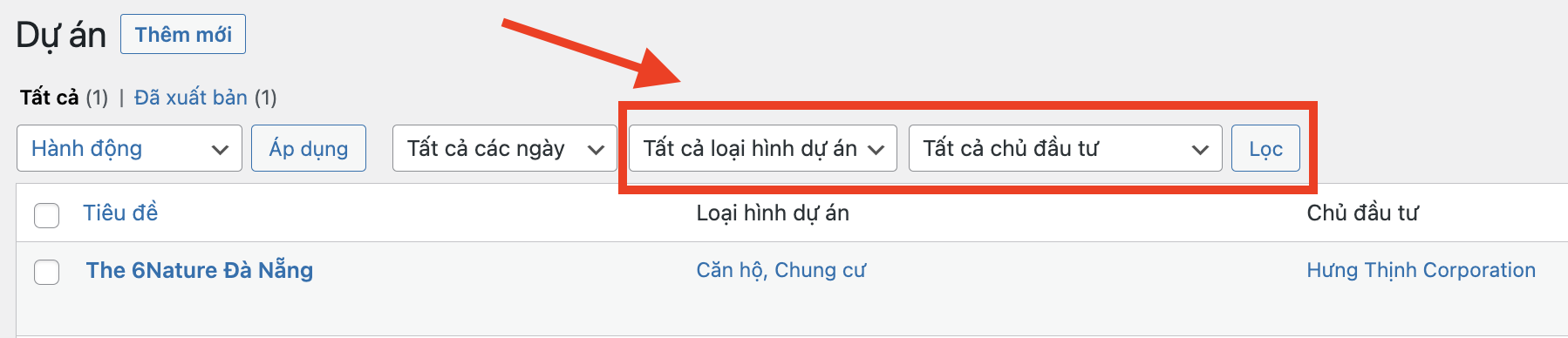 Hai là ở dòng thứ 4, bạn sẽ thấy đoạn $taxonomy_names = array('loai-hinh-du-an', 'chu-dau-tu');. Đây là slug taxonomy của mình, hãy thay thế thành của bạn nhé.